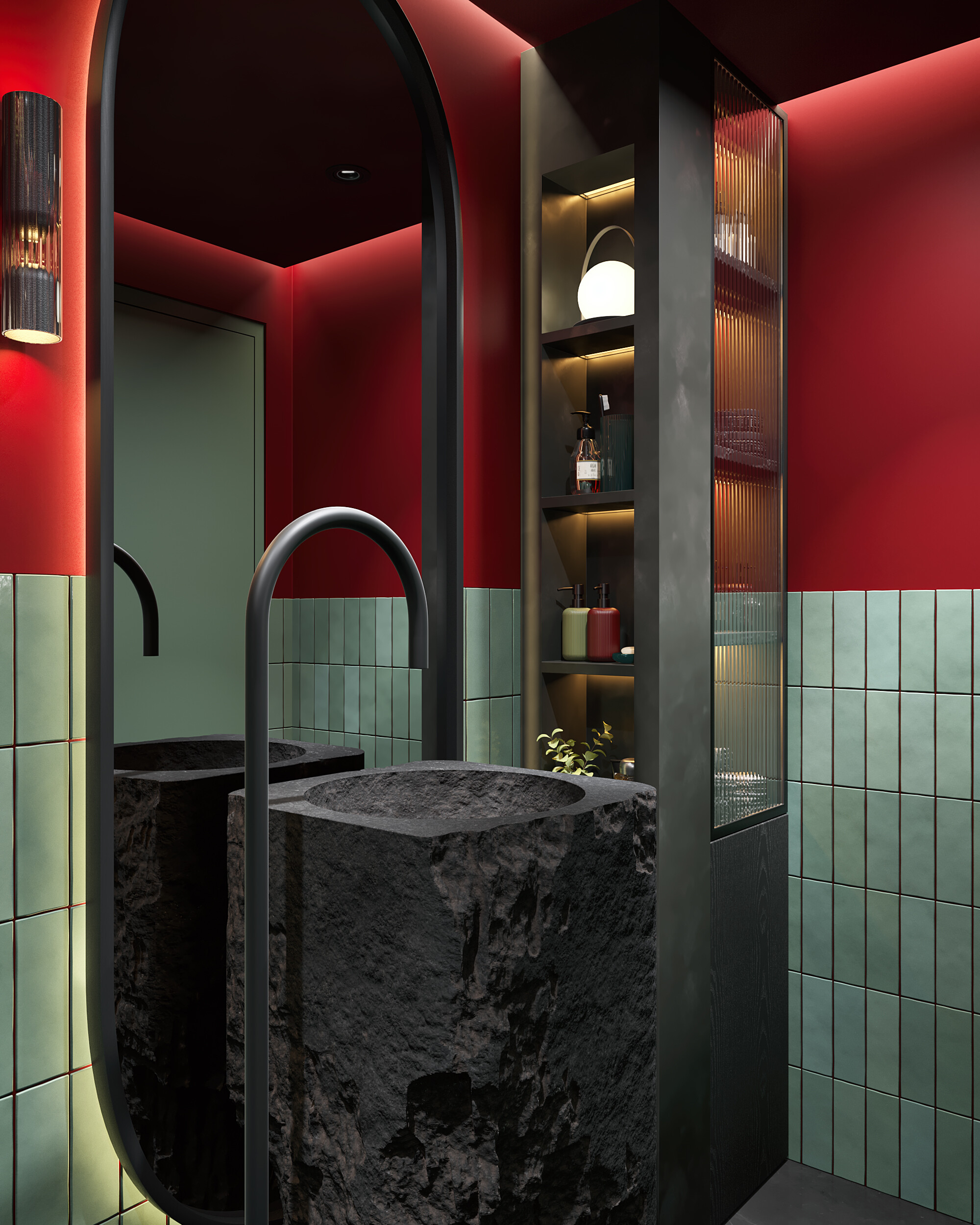 این پروژه الهام گرفته شده از علایق شخصی من به طبیعت هست. رنگ ها، گیاهان در حال رشد، نوری ک همانند ماه در حال درخشش است، روشویی که از دل زمین بیرون آمده، و یونیکورنی با تاجش ک همانند رویا از دل قصه ها روی دیوار نقش بسته ، همه با هم این اثر را خلق کرده اند.جوری که شما میتوانید رد پای طبیعت را در این فضا به وضوح ببینید✨