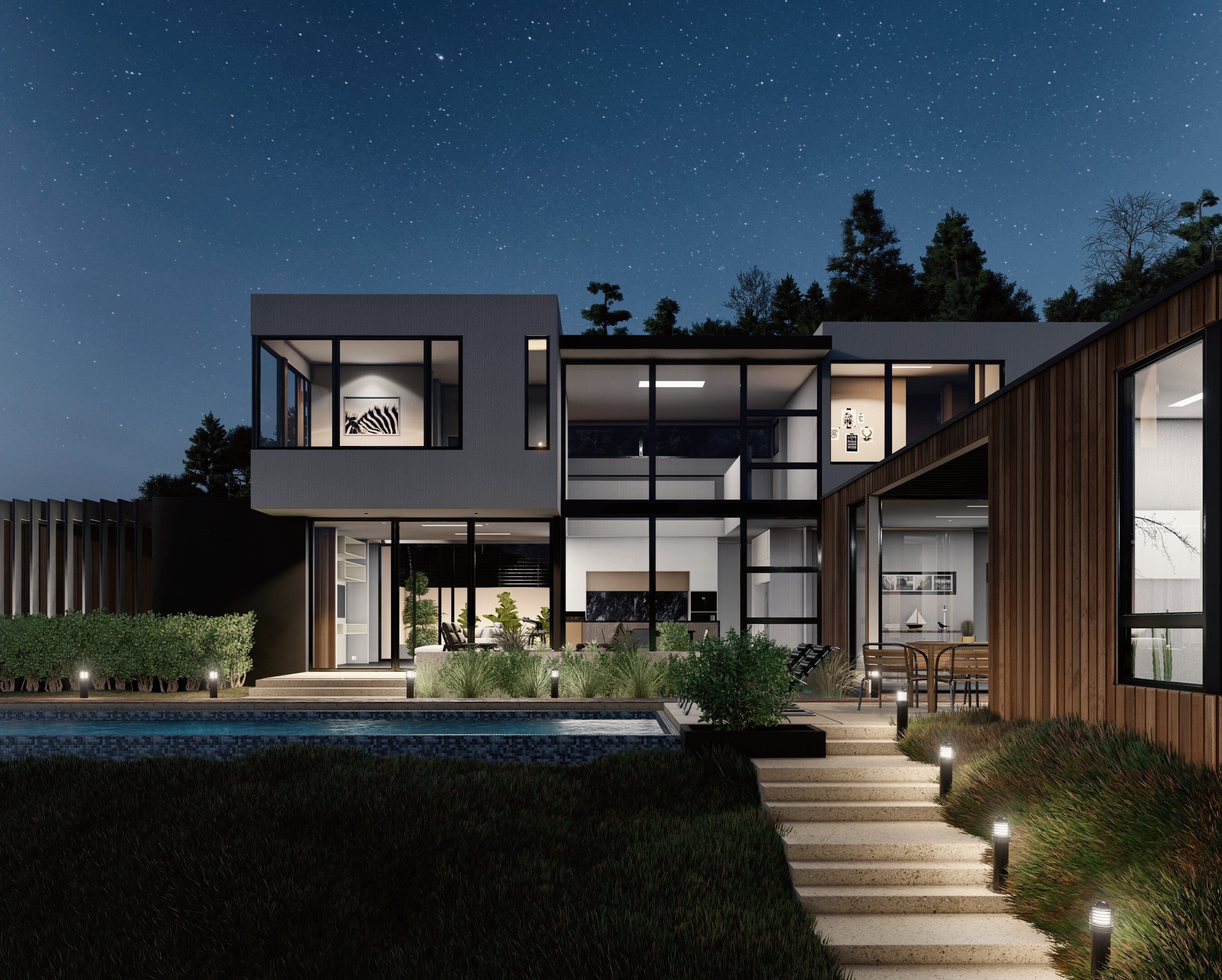 ویلایی مدرن در دل جنگل ،الهام گرفته شده از رفرنس مدلسازی شده در 3Ds max رندرینگ با Lumion پست پرو داکشن با فوتوشاپ
