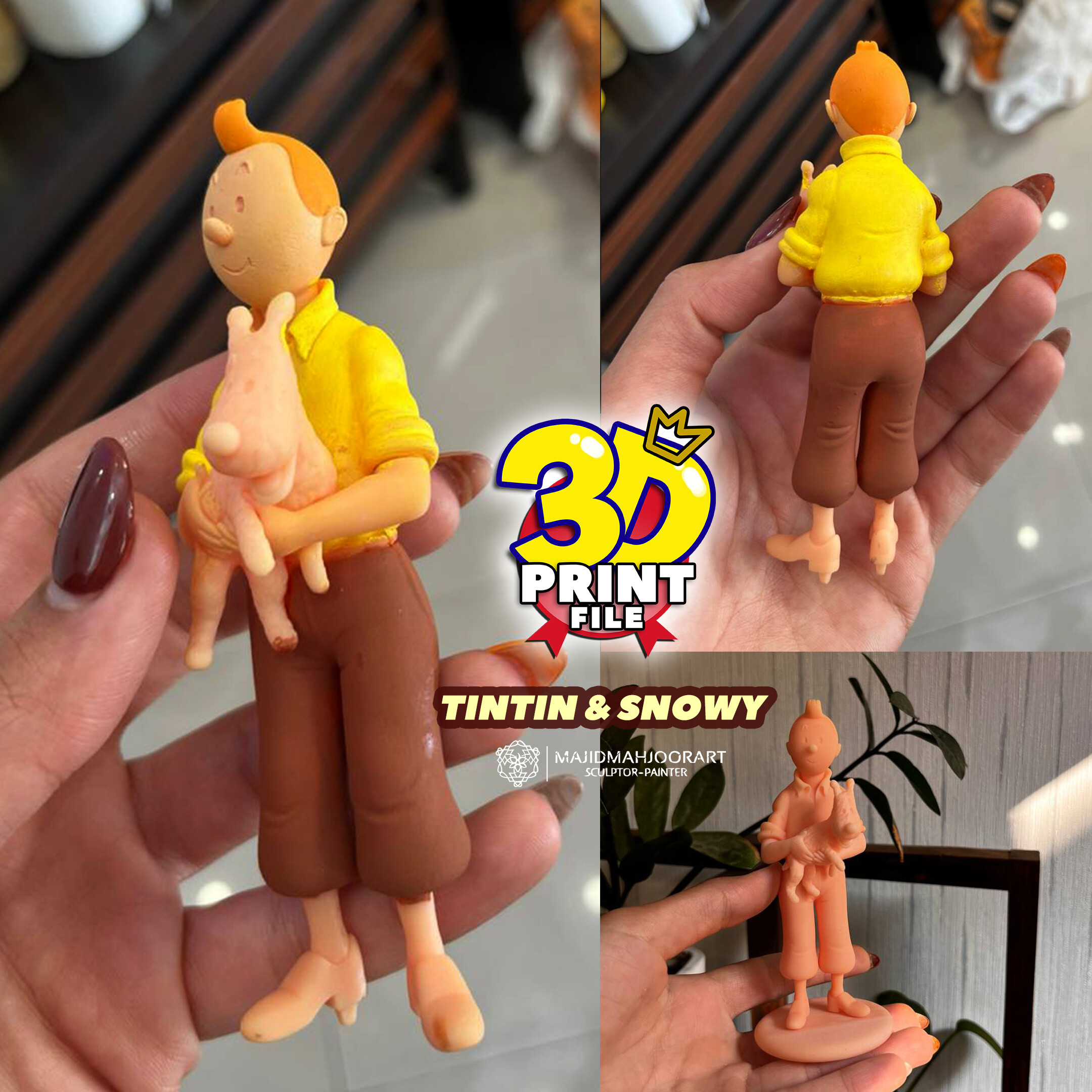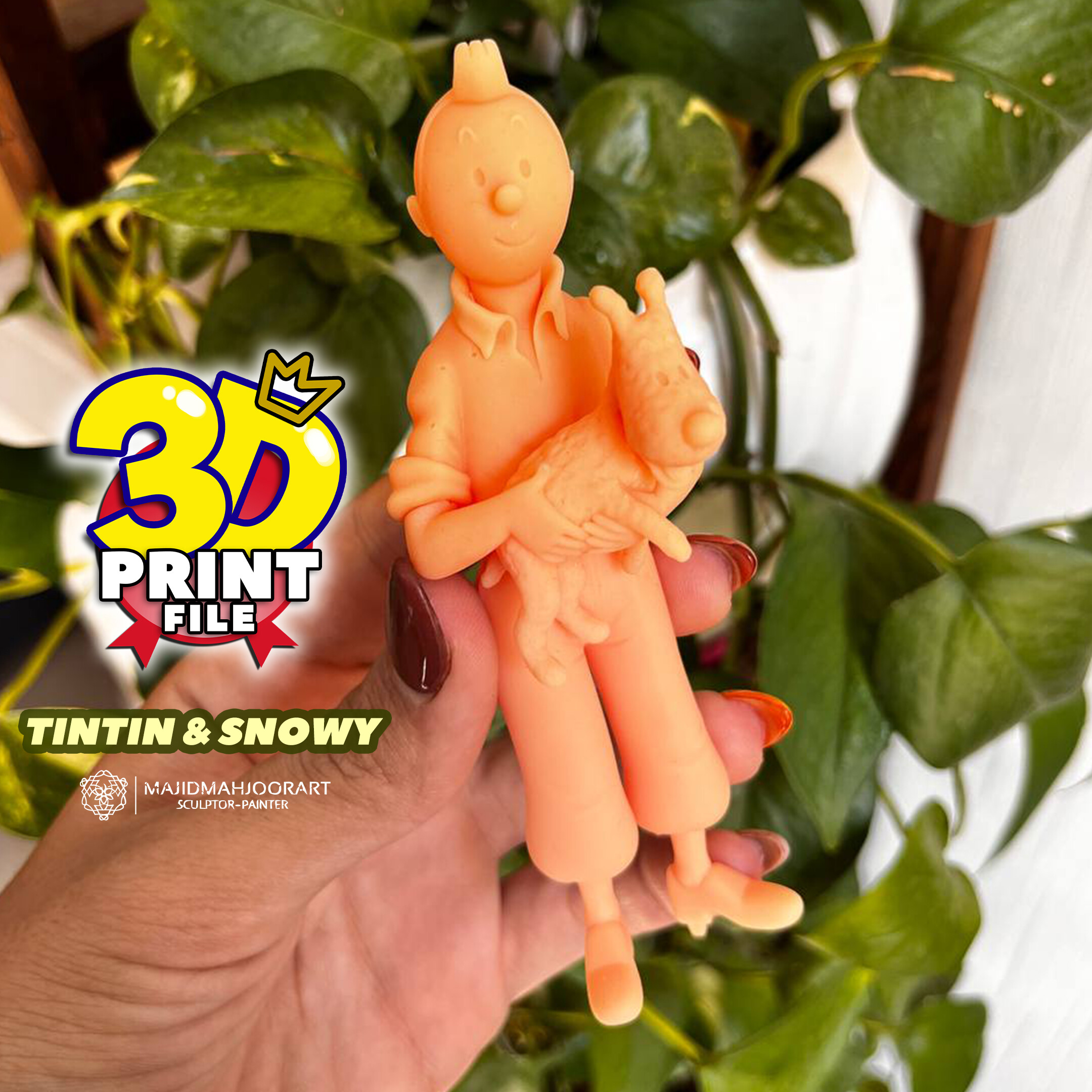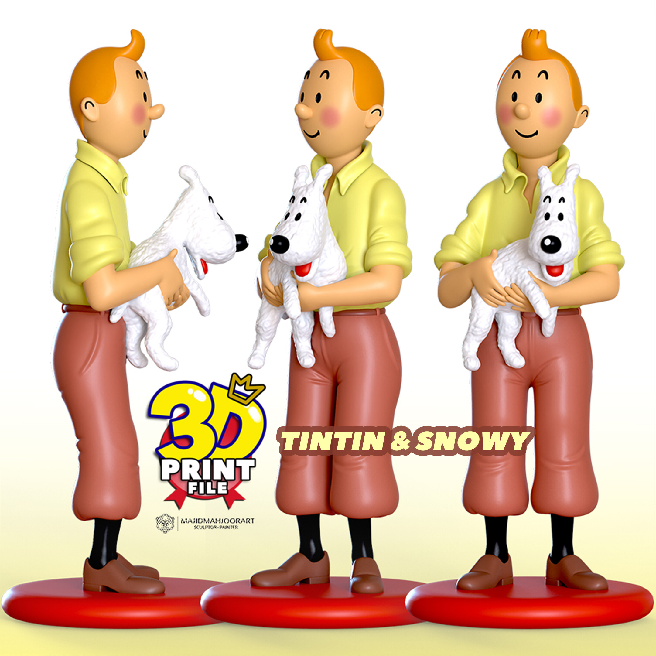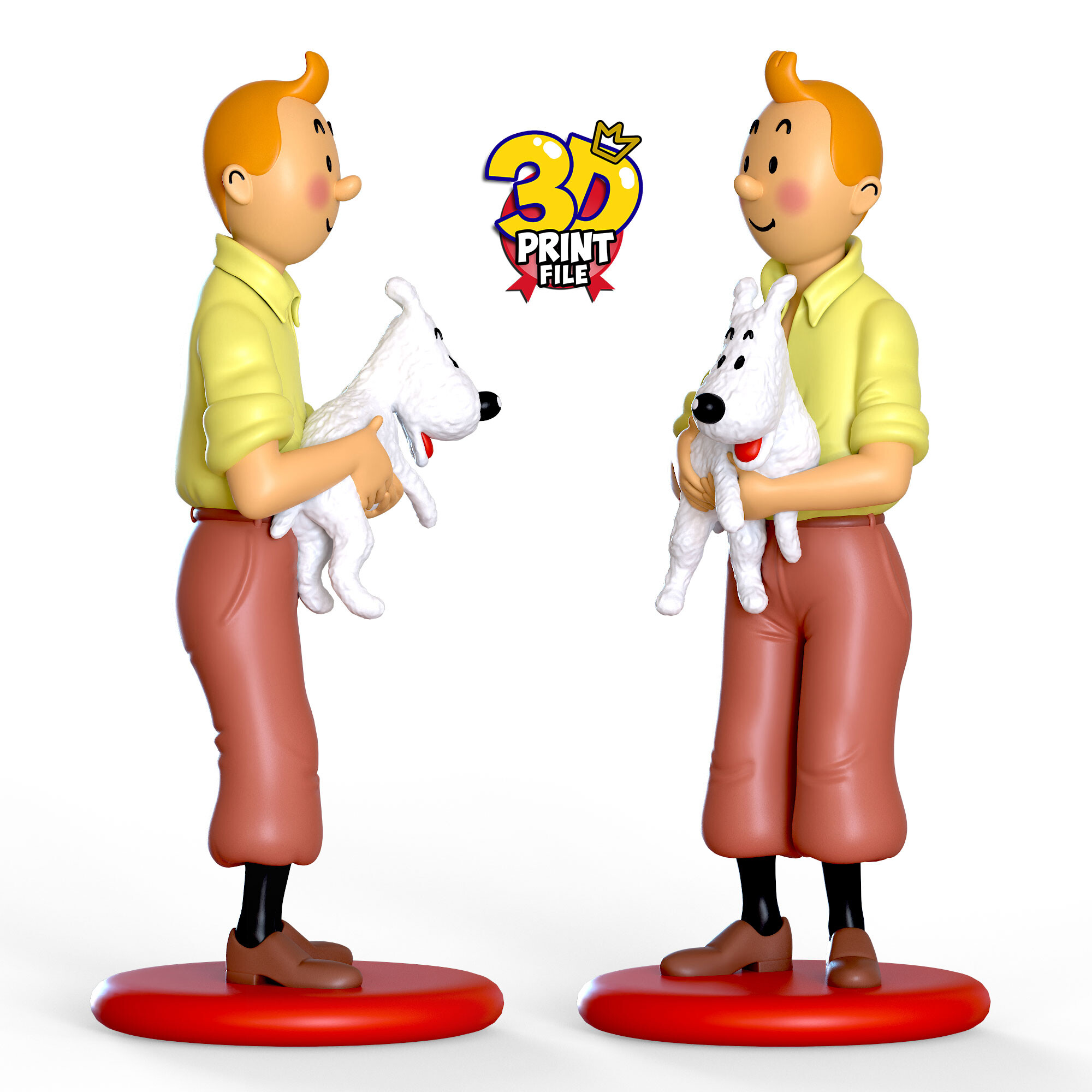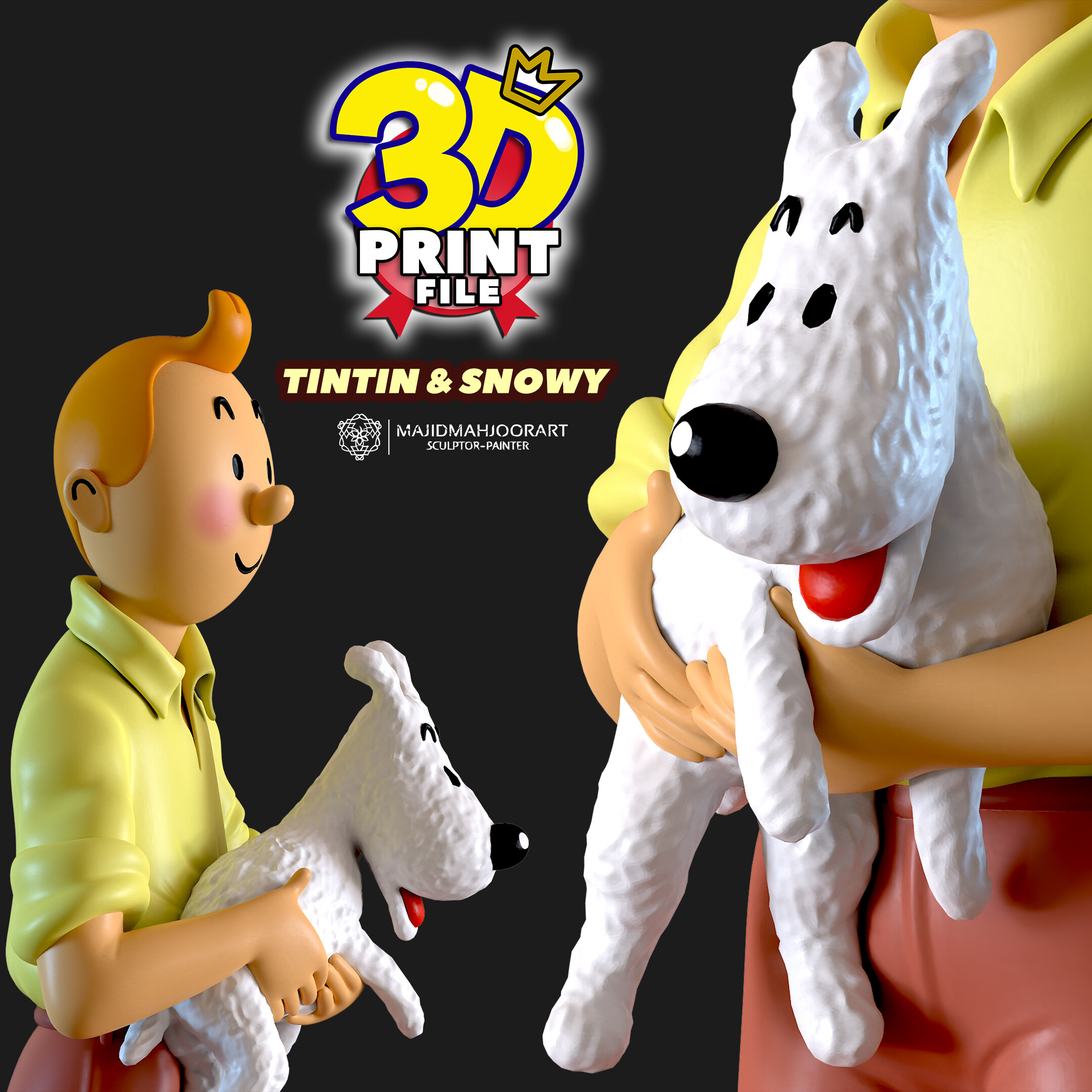 Hello my friend https://cults3d.com/en/3d-model/art/happy-boy-with-doggy The TINTIN and MILOU ( snowy ) standup 3d printable figure printable 3D model is now ready and you can get it and get 3D printing.. The advantages of this 3D models - The STL files are provided in solid and hollow form and in hollow form with holes :) - High model quality (STL file) - High detail of the model - Prepared for resin 3D printing and FDM printing and rendering - The files are free of common errors in 3D printers or slicer software - The files are very light - Model height : 13 cm https://cults3d.com/en/3d-model/art/happy-boy-with-doggy