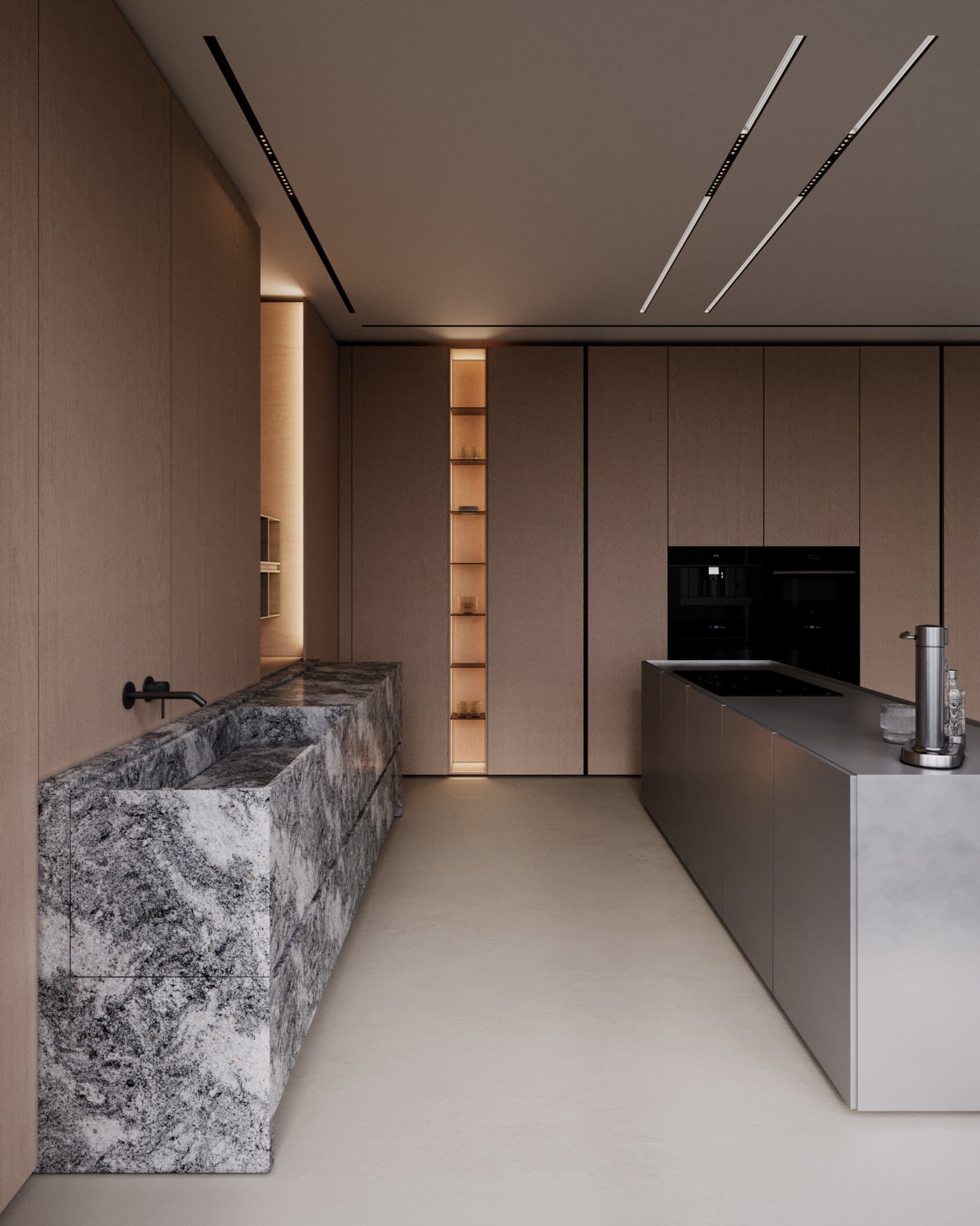 Exploring warmth through minimal form. Kitchen visualization developed for Nuvo, emphasizing clean lines, hidden details and calm material transitions. Previously published by Nuvo. CGI by me.